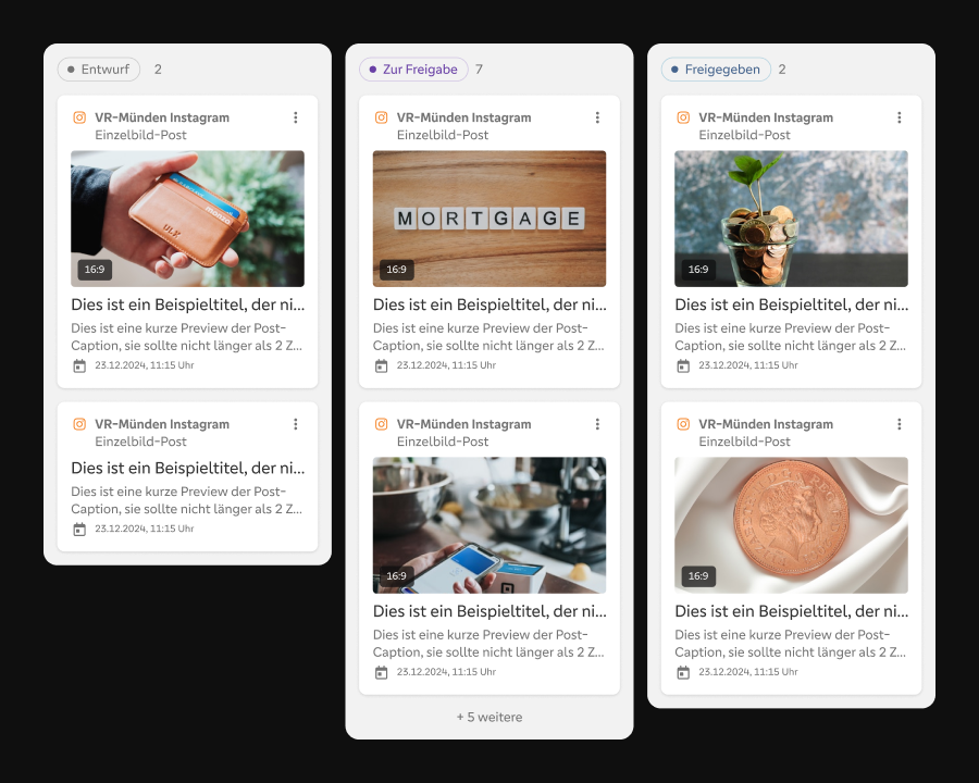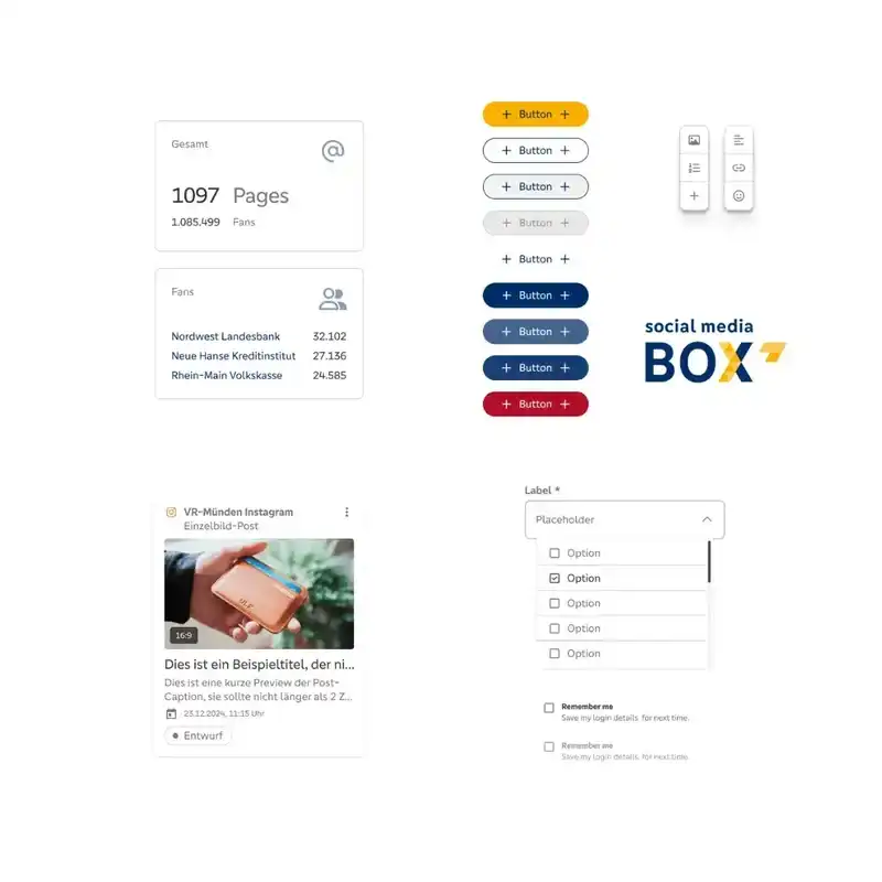 VR-NetWorld was confronted with the challenge that the Social Media Box, a tool used by many Volksbanken Raiffeisenbanken to manage their own social media activities, had become increasingly complex over the years. The benefits were not always clear to new customers. For existing customers, this sometimes led to them discontinuing use prematurely or not booking any new modules. An MVP was to serve as the starting point for a drastic improvement – the basis for a complete redesign of the application.