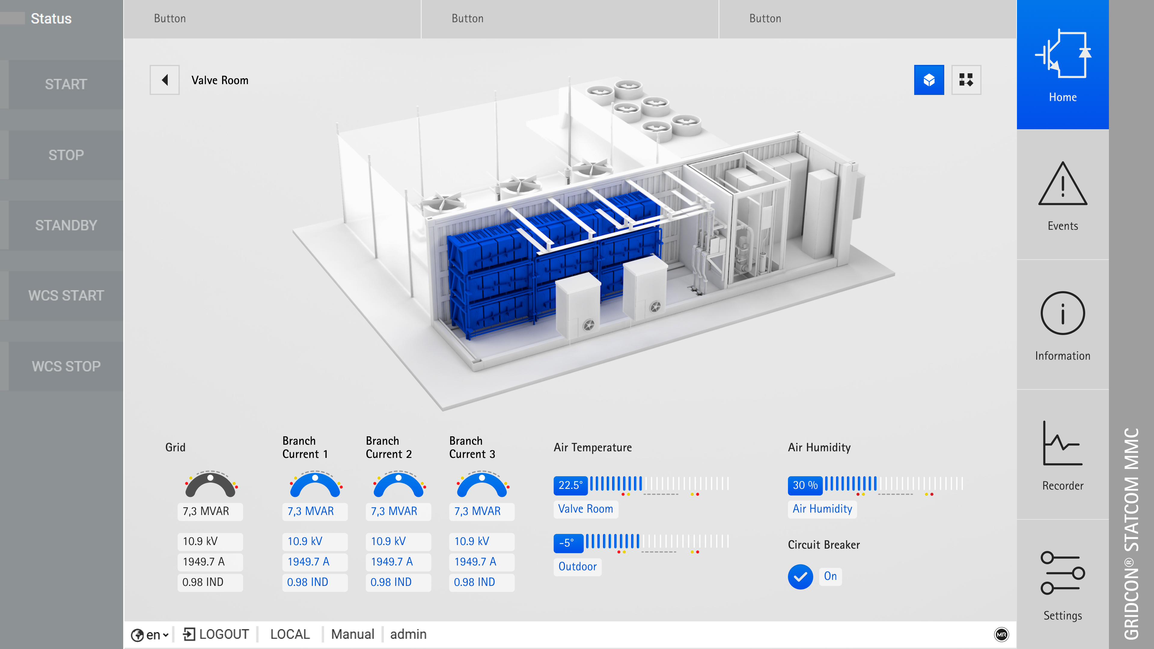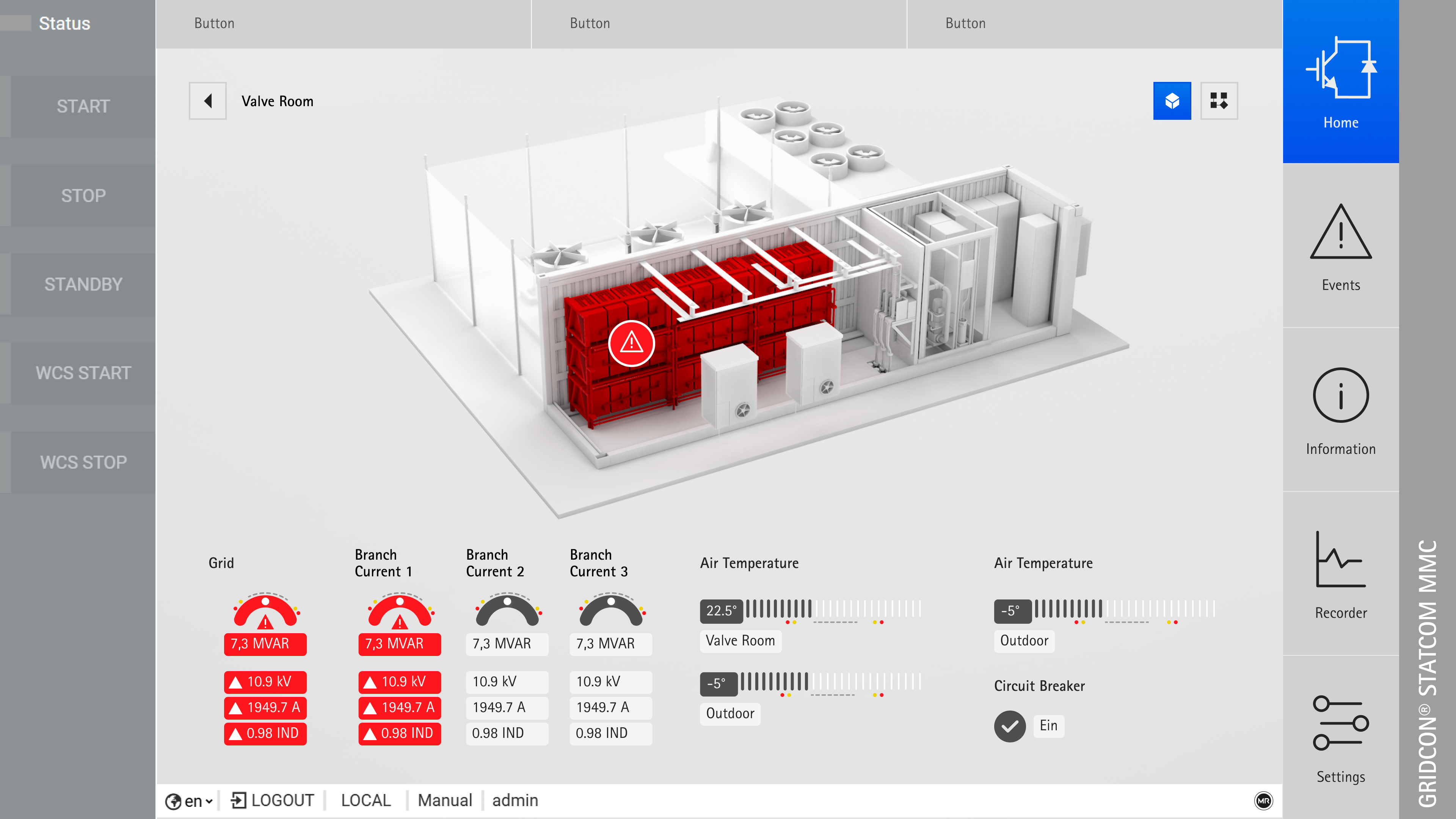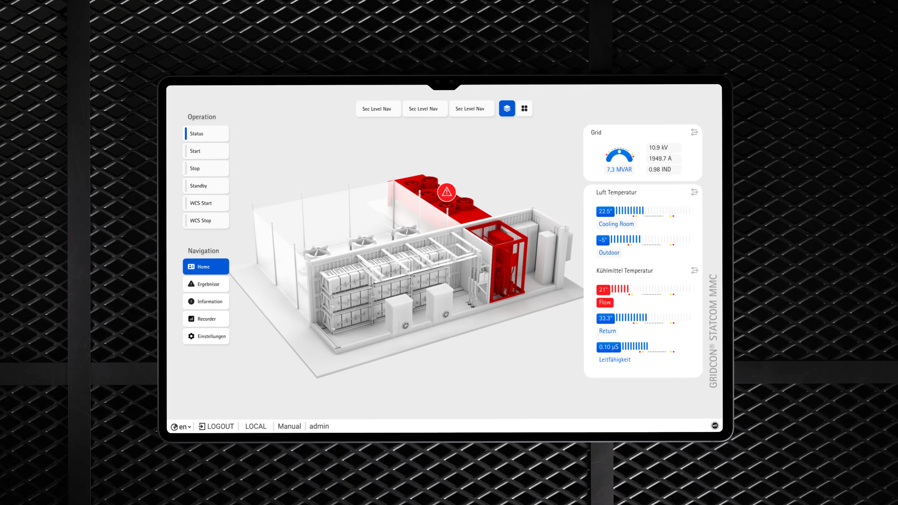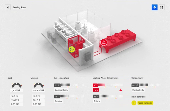 Reinhausen stand vor der Herausforderung, dass technische Fehler in der GRIDCON®-STATCOM-Anlage nur schwer identifizierbar waren. Die bestehende Benutzeroberfläche setzte umfassendes Wissen voraus und erforderte Schulungen, um Störungen präzise zu lokalisieren. Zudem waren betroffene Anlagenbereiche im Fehlerfall nicht eindeutig als Gefahrenzonen erkennbar. Um die Sicherheit zu erhöhen und die Bedienung zu vereinfachen, haben wir ein intuitives Interface entwickelt, das mithilfe eines fortschrittlichen 3D-Modells komplexe Daten visualisiert und Fehlerquellen sofort verortet.